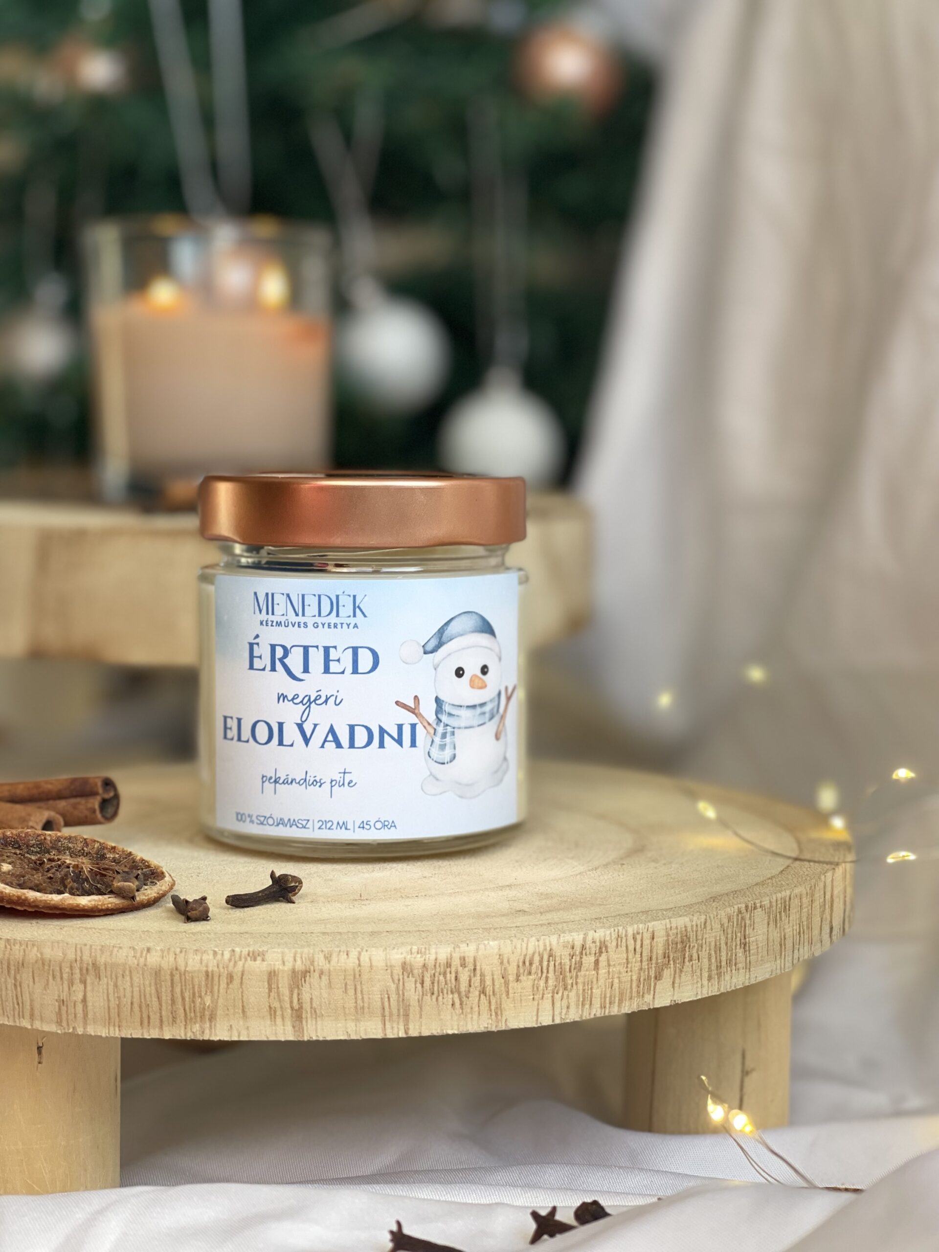 A Megéri elolvadni gyertya az ünnepi sütemények illatát hozza otthonodba: a pekándiós pite fűszeres-édes aromája varázsolja meghitté a téli estéket.